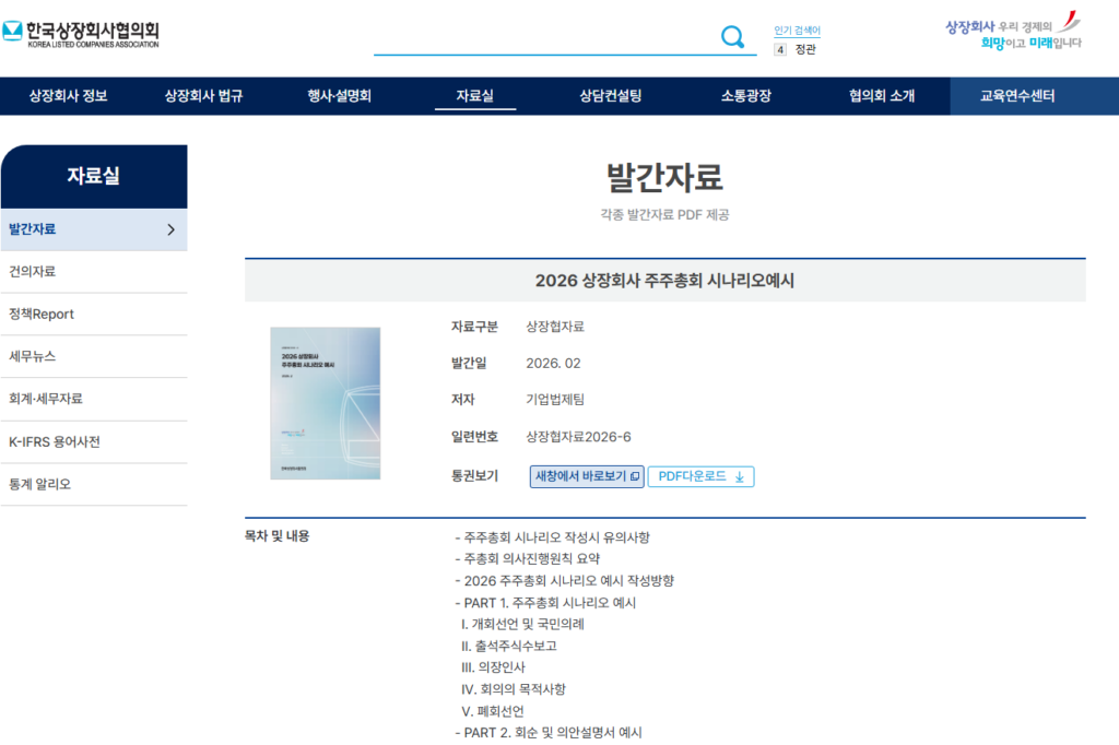 [2026.02 상장협자료] 2026 상장회사 주주총회 시나리오 예시 (+실무자 대비 체크리스트 총정리)