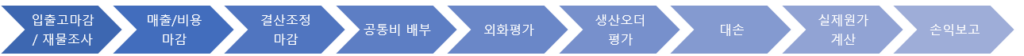 아래 그림은 월 결산업무의 대략적인 흐름이다. 프로세스를 묶어서 표시했지만 하나의 단계에서 수많은 사람들이 함께 업무를 하기도 한다. 내가 맡은 부분은 깊이 파고들 수 있어 전문성은 쌓이지만, 회계 전체의 큰 그림, 즉 다른 계정 업무의 흐름을 한눈에 보긴 어렵다. 옆자리 동료가 무슨 일을 하는지 정확히 알지 못할 때도 많다.