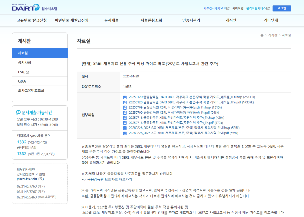 전체 ‘XBRL 재무제표 본문·주석 작성 가이드‘는 DART 접수시스템(filer.fss.or.kr) 자료실에서 다운로드 가능하다.